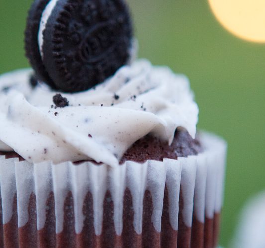Una de mis especialidades, fabulosas mini cupcakes de chocolate coronadas con una mini-galletita de Oreo. Es apta e irresistible a cualquier edad, y siempre sorprende (espero que para bien) a todos los que se lo hago. La decoración es muy llamativa, pero el sabor es mejor aún. 😀